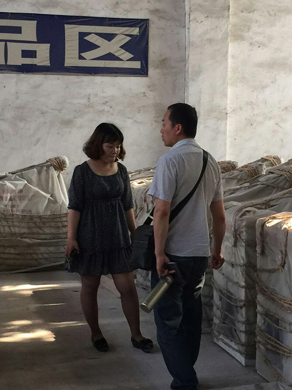 何先生在成品區(qū)參觀(guān)相關(guān)設(shè)備,工作人員耐心解釋