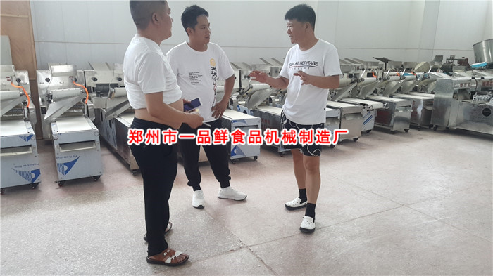 新疆烏魯木齊龔先生老家是四川的, 在新疆生活有二十多年了,一直從事面條批發(fā)生意。由于經(jīng)營(yíng)有方,在烏魯木齊擁有4家批發(fā)店。之前生產(chǎn)新疆拉條子,是用小型面條機(jī)改裝,存在效率低、不可自動(dòng)刷油、不能定量生產(chǎn)等弊端。在網(wǎng)上了解到一品鮮的多功能設(shè)備的多項(xiàng)出色功能后,前來(lái)實(shí)地考察。