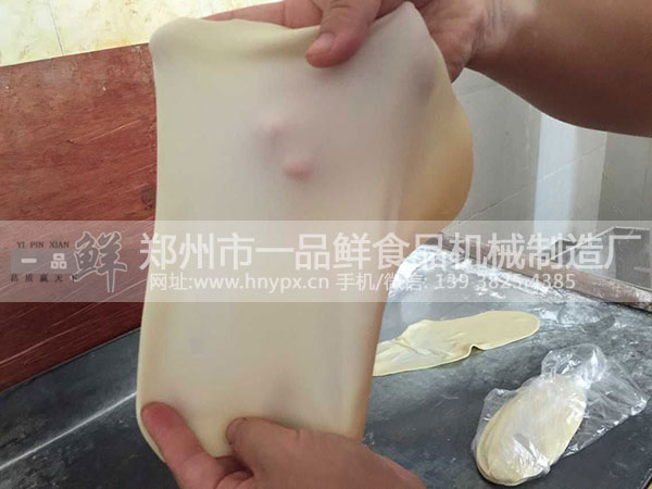 一品鮮燴面機(jī)生產(chǎn)出來(lái)的燴面坯,拉的薄的時(shí)候,就像紙一樣,能把面粉的面筋做出來(lái)。